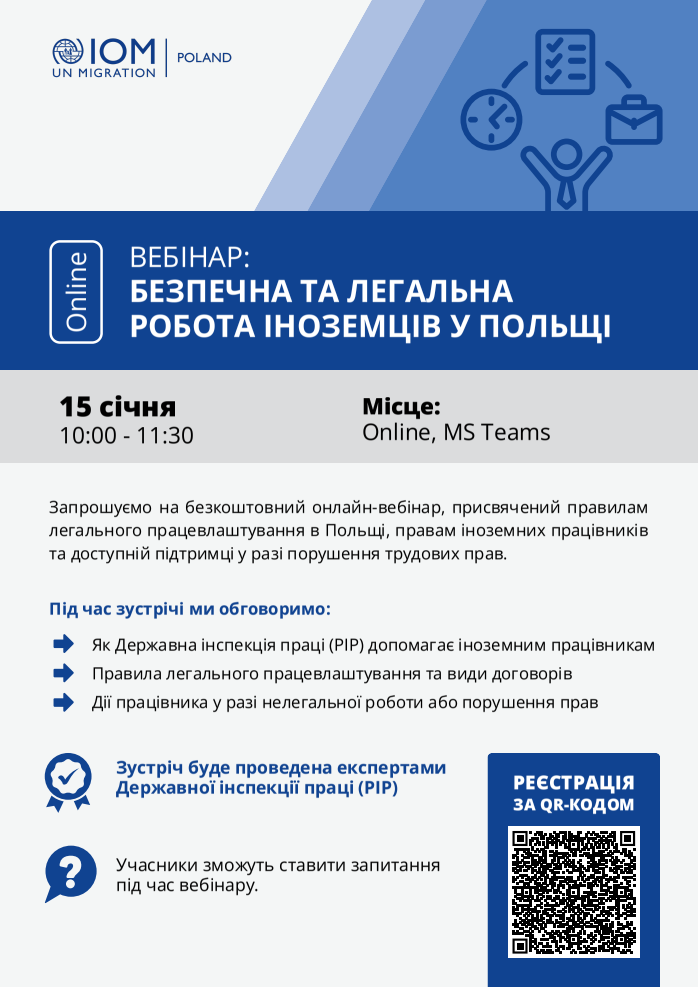 👉 Зареєструватися можна за посиланням: Вебінар: Безпечна та легальна робота іноземців у Польщі (15.01.2026) – Fill out form